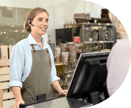 Headset Bluetooth PTT pequeño, ligero y discreto, diseñado para personal de tienda en movimiento. Permite comunicación manos libres sin interrumpir la atención al cliente, gracias a su diseño que pasa desapercibido.